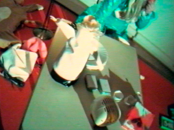 Parallel dazu simuliert eine Tonbandstimme die Gedanken der Künstler in Form einer Kurzgeschichte. Sie agieren und reagieren aufeinander, als führten sie eine eingespielte Choreographie auf. Gleichzeitig nehmen sie mit subjektiven, auf ihren Stirnen postierten Kameras ihr Gegenüber auf. Die Performance wird zusätzlich von drei weiteren Kameras aufgezeichnet. Deren Zusammenschnitt sowie das ”blind date” Wohnzimmer sind für die Ausstellungsdauer zu sehen.