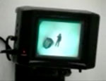 Dort, wo normalerweise spontan Laute gebildet werden erscheint die graphische Wortfolge als Projektion. Das Schreiben beginnt, wenn das Sprechen nicht mehr möglich ist. Die Arbeit verweist auf diesen denkbaren Zusammenhang zwischen dem Verstummen und der Entstehung von Texten und "versöhnt” den aufbrechenden Gegensatz, indem sie die Textbruchstücke wieder da zeigt, wo das gesprochene Wort hätte erklingen sollen.
