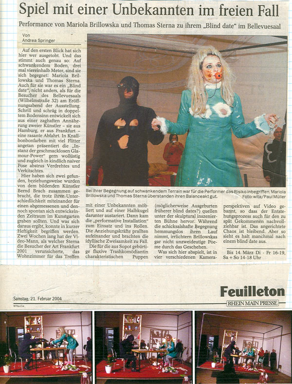 "Bellevue-Saal 2004-2005" , Verein zur Förderung künstlerischer Projekte mit gesellschaftlicher Relevanz e.V. Wiesbaden; Hrsg: Ulrich Meyer-Husmann, Wiesbaden 2006 |