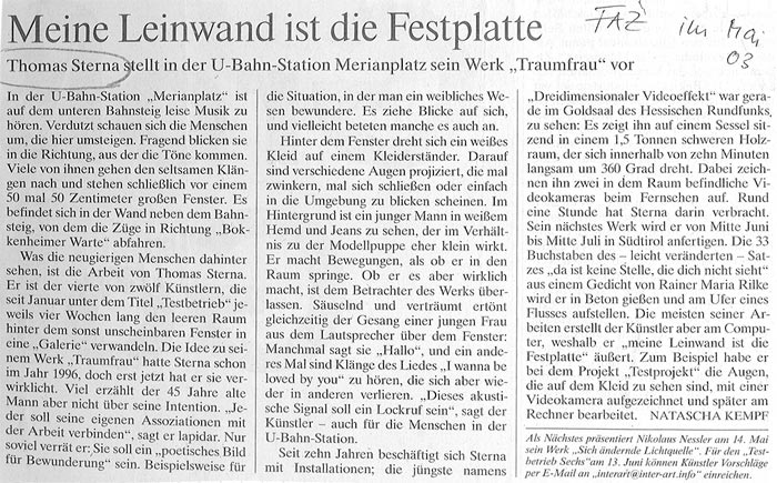 "Deutsche Videokunst / Deutsche Videoinstallationskunst 2000 - 2002",