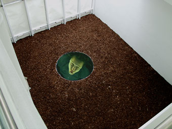 Rückprojektionsfläche (Durchmesser:120 cm), 140 kg Rindenmulch. |