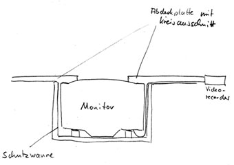 Vhs-Player, Verstärker, 2 Hifi Lautsprecher, Videoprojektor, Balkenkonstruktion, Holzplatten (430 x 530 cm),